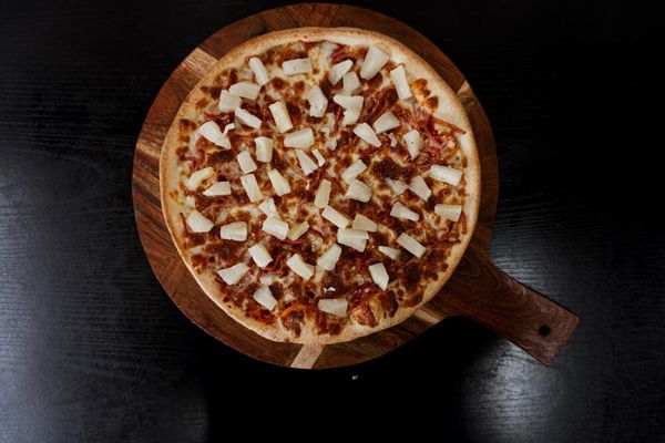 BBQ Base, Chicken, Onion, Pineapple and Cheese.