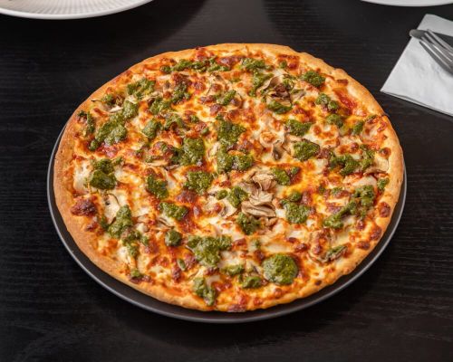 Tomato Base, Chicken, Mushroom, Onion, Pesto and Nuts.