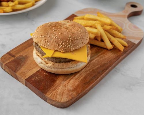2 beef patties, bacon, onion, lettuce, tomato, cheese, mustard & tomato sauce